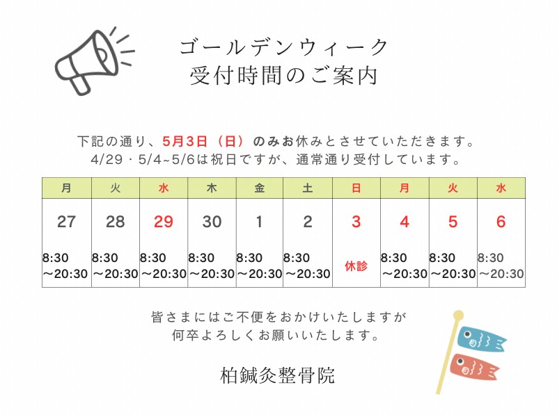 柏鍼灸整骨院のホームページをご覧いただき、ありがとうございます。